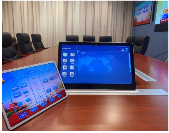 四川某单位需打造一个可以“一室多用”的智能会议室,这里长12米、宽8米、高4米,常用于举行多人视频会议,兼用作12人的圆桌会议,故考虑并选用了BOSCH专业音频设备,从无纸化、中控、音响扩声三方面着手。