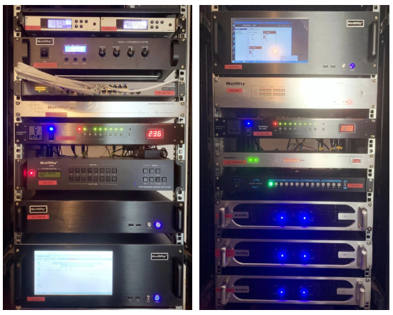 音响扩声方面,由音源部分、处理部分、后级功率放大、扬声器组成一套扬声器系统。