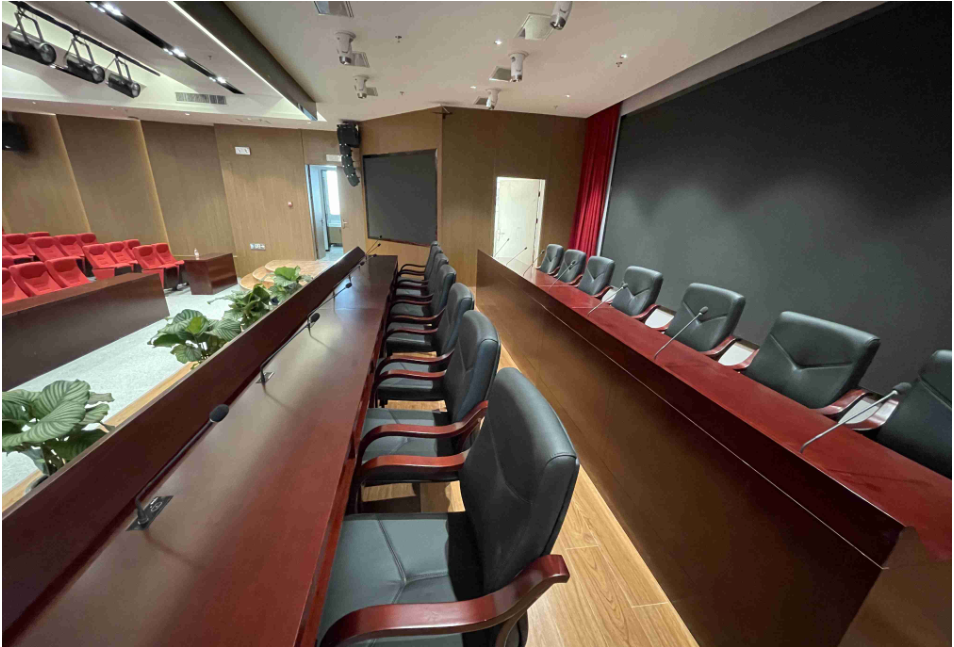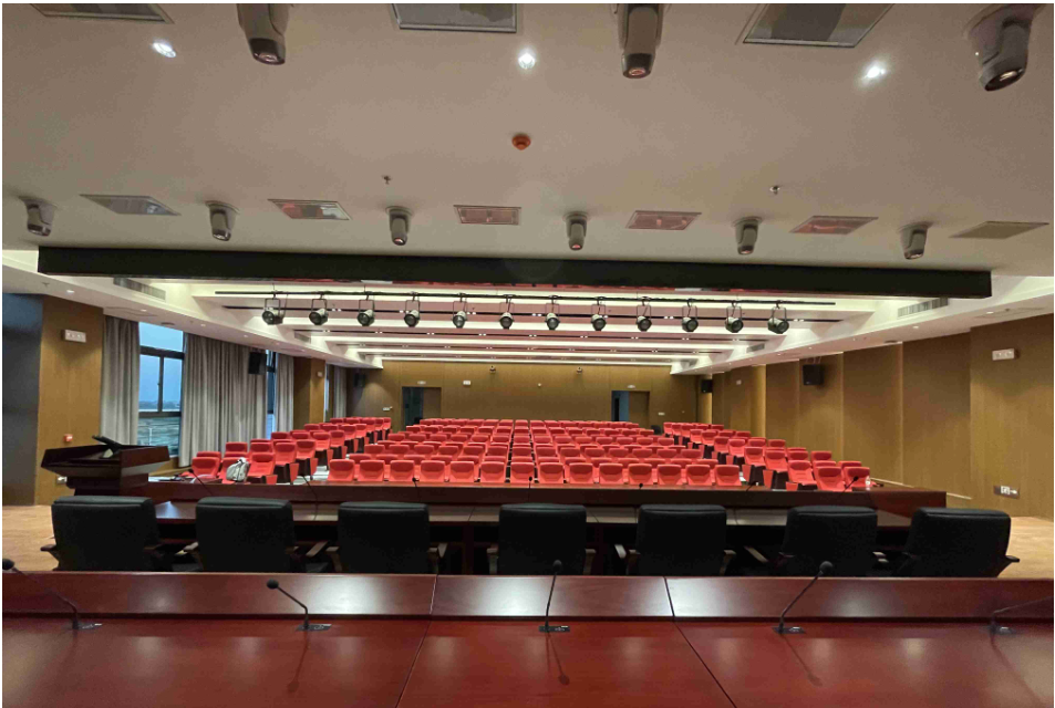 陕西渭南会议中心经常举办各类大型会议,会议频繁召开,对会议设备提出了更高的要求。HUAIN华音根据大型阶梯报告厅和小型会议室的使用需求,选择全数字嵌入式会议系统进行搭建使用。全数字嵌入式会议单元HY-6120系列根据桌面尺寸量身定制,全铝合金面板内嵌触控亚克力面板,具备防水防尘功能;支持数量限制、先进先出、后进先出、主席允许、自由讨论五种会议模式;拾音有效距离可达50-60cm,信号稳定,发言无噪音电流影响。
