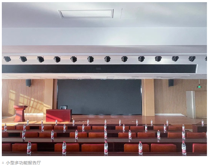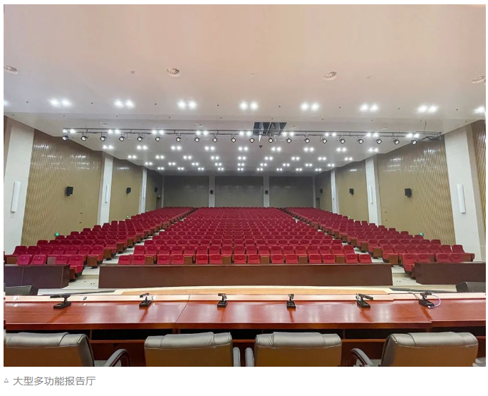 大型多功能报告厅可容纳600余人,空间较大。要求多功能报告厅可满足各类培训、学术报告、研讨交流会等大中型会议及大中型文艺演出等多种使用需求,能满足会议讨论、发言等语言扩声使用功能,确保整套扩声系统声音饱满通透,人声清晰自然。