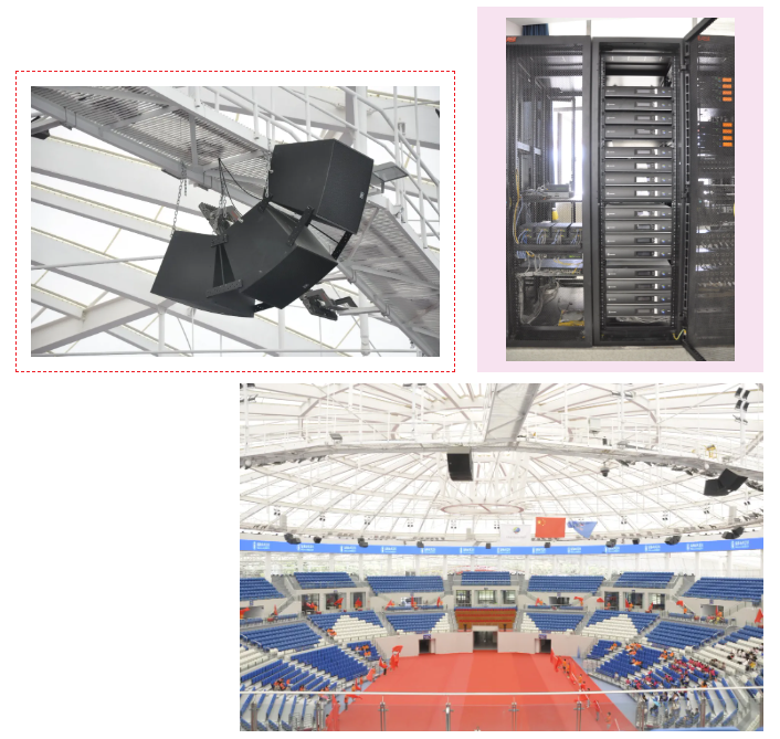 主场馆内,EV和DYNACORD联手呈现了一如既往的良好音质:EVH-1152D作为混响声场的理想选择,以其高解析力和均衡的角度覆盖控制,为场地提供了优异的语言清晰度和醇美音质,让在场的每位观众和运动员都能及时接收到信息,在一些应用场景中对于音乐播放也显得游刃有余,再加上DYNACORD的IPX功率放大器的功率支持和MXE5 混音矩阵的调控,整个扩声系统表现令人折服。