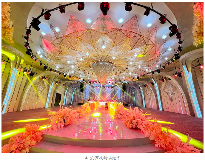 作为一家星级艺术宴会酒店,宴会礼堂功能定位相对较高,希望二楼宴会厅、三楼宴会礼堂均能满足婚宴、寿宴、生日宴、升学宴、乔迁宴、尾牙宴、大型会议及年会庆典等功能性使用需求,因此对音响扩声设备的品质也有着严格的高要求,基于酒店方要求,扩声系统设计团队从前期的设计,现场勘察,沟通,方案修改,定方案,设备安装,扩声系统调试及验收完成等,各个环节都非常严谨及重视。