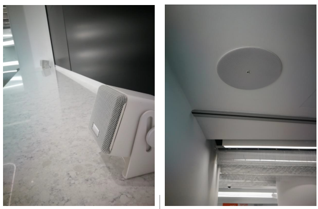 为了融入展示中心的设计观感,选择了德国EV的超紧凑型扬声器i4,而且特别从德国工厂定制了白色版本,搭配DR的高保真天花扬声器,在展示中心内做到“只闻其声不见音箱”的观演效果,而且扩声系统的音质保证世界级水准,让来到展示厅的宾客产生愉悦的观感,进一步增强客户体验。