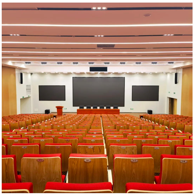 重庆医科大学科研楼学术报告厅扩声系统由德国SEEBURG acoustic line (SAL声爱乐)和西班牙RAM audio打造,自主品牌DIGIRATE迪吉瑞为其配备高效稳定的数字会议系统,以满足召开各类会议、学术讨论、演讲、报告、新闻发布、多媒体教学培训、观看电影等活动需求,大大提高学校教学质量与师生文娱活动水平。