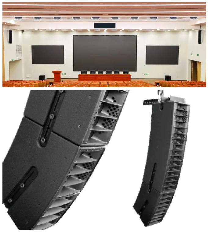 主扩是由两个GL8c与4个GL8i组成的柱体式线性阵列扬声器,仅19厘米宽的箱体,也能保证高清晰度声音还原和高质量音乐重放,非常适合如报告厅这种需要远距离传播的环境中使用,最终效果让人满意。