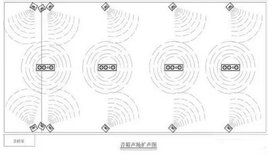 一般说来,狭长厅堂的扩声,一定要音箱的扩声区域尽量沿长边展开;空间较高的扩声场合,要尽量将音箱位置抬高,最好是略微向后场倾斜;如果是在空间和面积都较大的地方进行扩声,就应该考虑将音箱集中悬挂成圆弧形形成均匀的声音扩散。