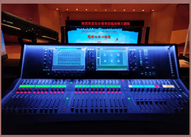 与DM64接口箱组合的配置。调音台系统最多支持128路话筒输入处理,LRM、LCR左中右和5.1环绕声总线输出,给这个位于世界之巅的大剧院带来强大的架构,适用于各类演出活动。