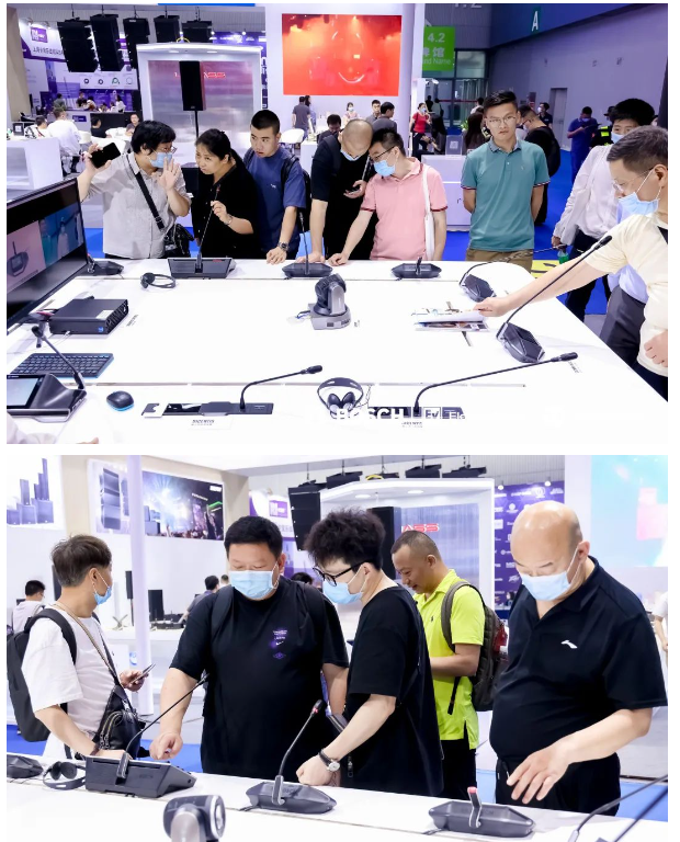 在会议系统展区,是博世会议系统旗舰产品——DICENTIS会议系统。本届展会特别展出了DICENTIS嵌入式设备的全新模块:表决和身份识别模块,此款产品可为桌面空间有限的会议场合,提供易于集成和经济高效的安装方案。另外,博世Integrus红外语言分配系统也进行了产品更新,推出全新的OMNEO红外同传主机,它能够直接与DICENTIS会议系统进行集成,并通过软件许可证的形式为每个项目量身定制同传语言通道数量。值得一提的是,博世还将今年初在欧洲ISE集成展上首次亮相的DICENTIS Hybrid融合会议解决方案带到了现场,供合作伙伴和用户进行先行预览。