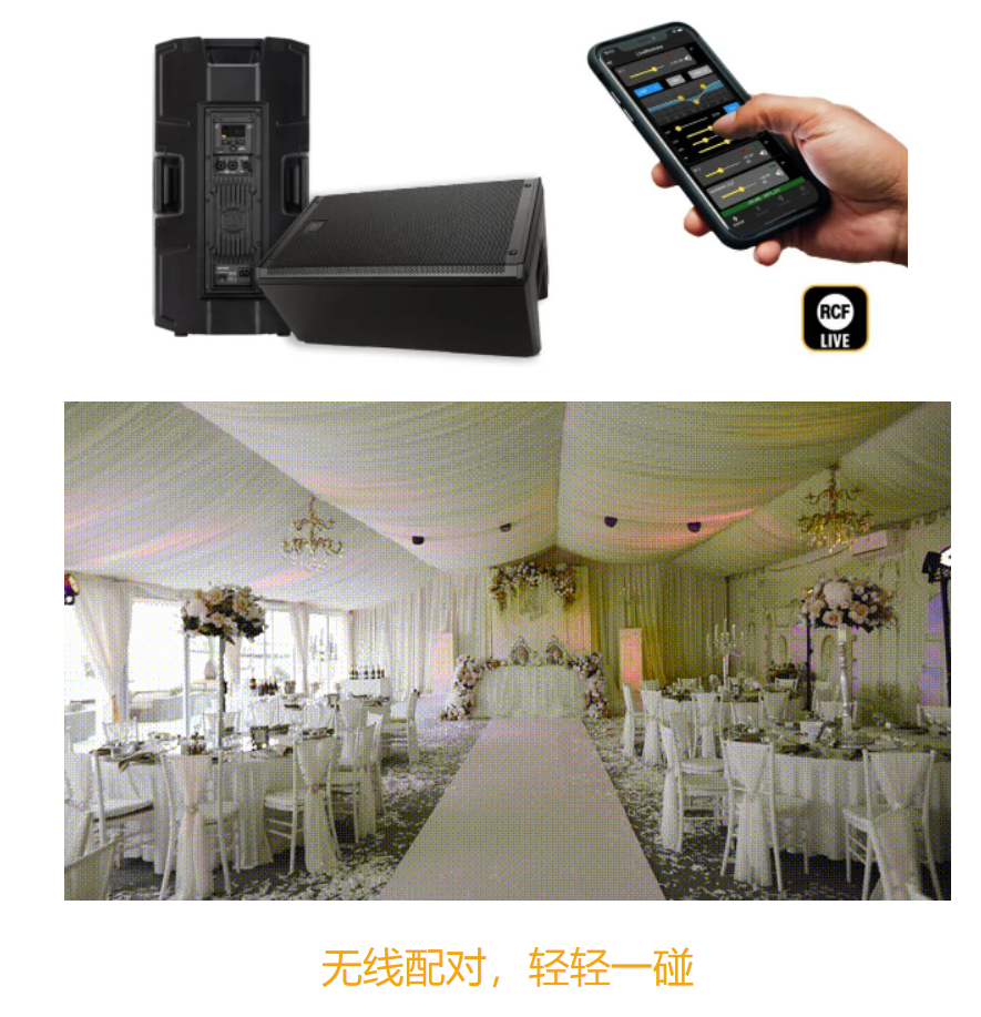 借助RCF超低音扬声器的内部现成预设,音响系统可以完美校准,只需几个步骤即可开始运行。