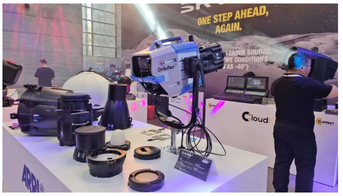 雅江光电充分利用展位空间,打造流线型结构,划分设置“前台区”、“ARCTIK展示区”、“SILVER STAR展示区”、“客户休息区”、“控台区”五大空间区域。分设“交互式投影展示位”、“顶部灯箱展示位”两大灯光展示区域。有效展示雅江光电2023主推新品,为观众留下深刻印象。