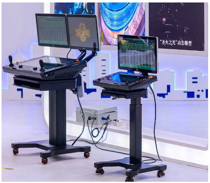 北特圣迪展出最新研发的两款新型看片在线观看免费机械多信息集成交互控制台,该控制台对硬软件性能和操控性进行了双重提升,可实现高科技演艺装备在不同应用场景下的精准、快速、便捷控制,分为标准型和便携式两个型号。新型控制台人机交互界面更加友好,宽大的显示屏使信息承载量大幅提升。内置工控机装配强大CPU和高配置显卡,使得运行更为流畅。内置的高速通讯接口(Profinet、EtherCat等),可快速收发主PLC的控制指令,从而进一步提升信息传输的实时性和可靠性。