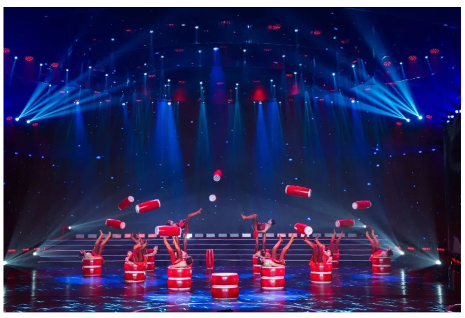 杂技《鼓与呼》通过传统杂技蹬鼓表演,配合昂扬有力的鼓乐节奏,呈现力与美的视觉盛宴,展示昂扬向上的奋斗精神和时代风貌。
